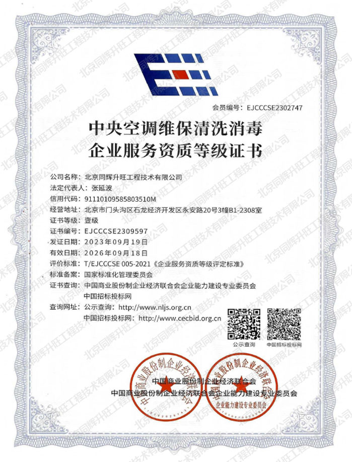 中央空调维保清洗消毒企业资质证书