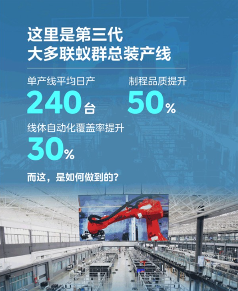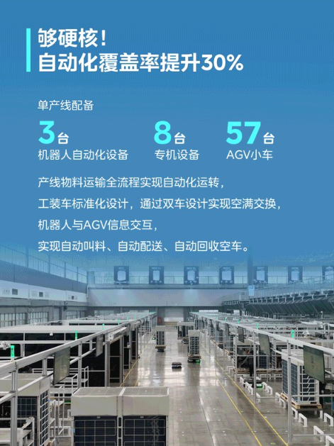 美的楼宇科技第三代大多联蚁群总装产线单产线平均日产240台,制程品质提升50%,线体自动化覆盖率提升30%。