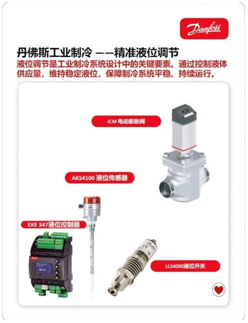 ICAD B执行器与电动阀协同动作,实现流量、压力的精准调节,匹配不同时段、不同负荷下的制冷需求,配合丹佛斯不同的子系统控制,例如液位控制,温度控制等模块化方案,提升回路流通效率与调节效果。全系列部件高度集成、无缝协同,让系统调控更精准、运行更平顺。