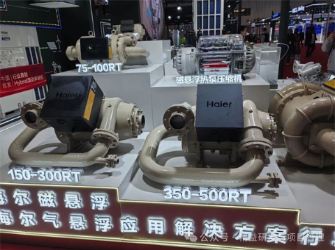 鑫磊展出了系列化的磁悬浮压缩机,鑫磊在行业里的特点是低价,可以很低的价格去销售,变频器用了汇川,气动应该是自己设计的,磁控是外面买来的,电机也是买来的。目前也可以做到800冷吨,相比压缩机的体型略大,宣传今年六月份会推出一体机。之所以这两年涌现出如此多的磁悬压缩机就是因为一切皆可买到,自己招聘些气动和结构的人一组合就好了。这种做法的好处是快,不好的地方则是根基不牢。如果不能自己掌握核心技术,就容易在一些地方掉进坑儿里,磁悬浮一般都是给大客户配套,他们都非常挑剔,一旦技术不能自主可控,推进会比较困难。过去我们常说做磁悬浮需要磁轴承技术,高速永磁电机技术,高速矢量变频器技术,气动技术,现在看还需要外加一个制冷应用技术,这五大技术缺一不可。我不认为磁悬浮压缩机行业是一个可以速成的行业,毕竟丹佛斯turbocor搞了三十年了,飞旋也搞了二十年了,坦白的讲我们搞了这么久还依然会遇到很多新的技术问题,更何况一些新入局者。磁悬浮行业要打持久战的,是一个长期主义的阵地。肯定不能学秦朝,秦朝给我们的教训就是“可以速强,然必速亡”。